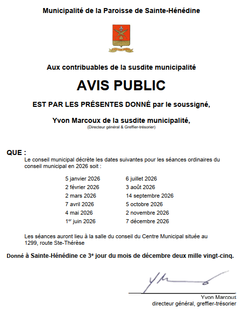 Municipalité de Sainte-Hénédine 2025 © Tous droits réservés / Propulsé par creaWEB4 -